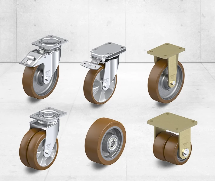 Wheels and castors with cast Vulkollan® polyurethane tread
